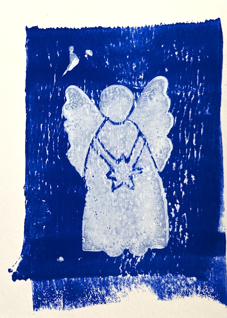 Weihnachtskarte Engel auf blau